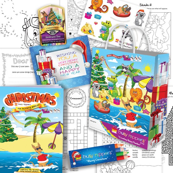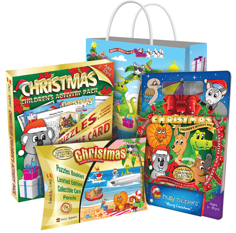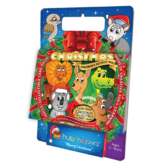 Each Christmas Combo comes with 4 x different Busy Nippers products:- 25 Activity Bags, 25 Activity Pillows, 25 Activity Boxes & 25 Activity Pads. Christmas Combos require limited storage space giving your staff easy access to 4 different product options in a single carton. The activity packs come in 4 x seasonal designs and will keep children busy for well over an hour. Keeping children happy has been proven to promote repeat family business, increase revenue and create a better environment for other guests. Can be used as a value added giveaway or create a revenue opportunity by charging a nominal price.